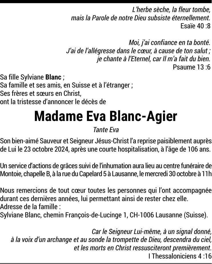 Madame Eva BLANC-AGIER