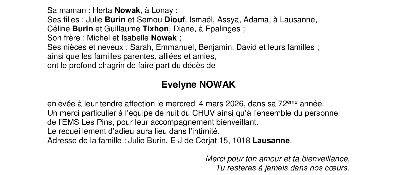 Avis mortuaires / Remerciements