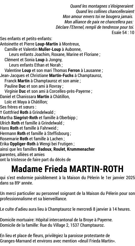 Madame Frieda MARTIN-ROTH
