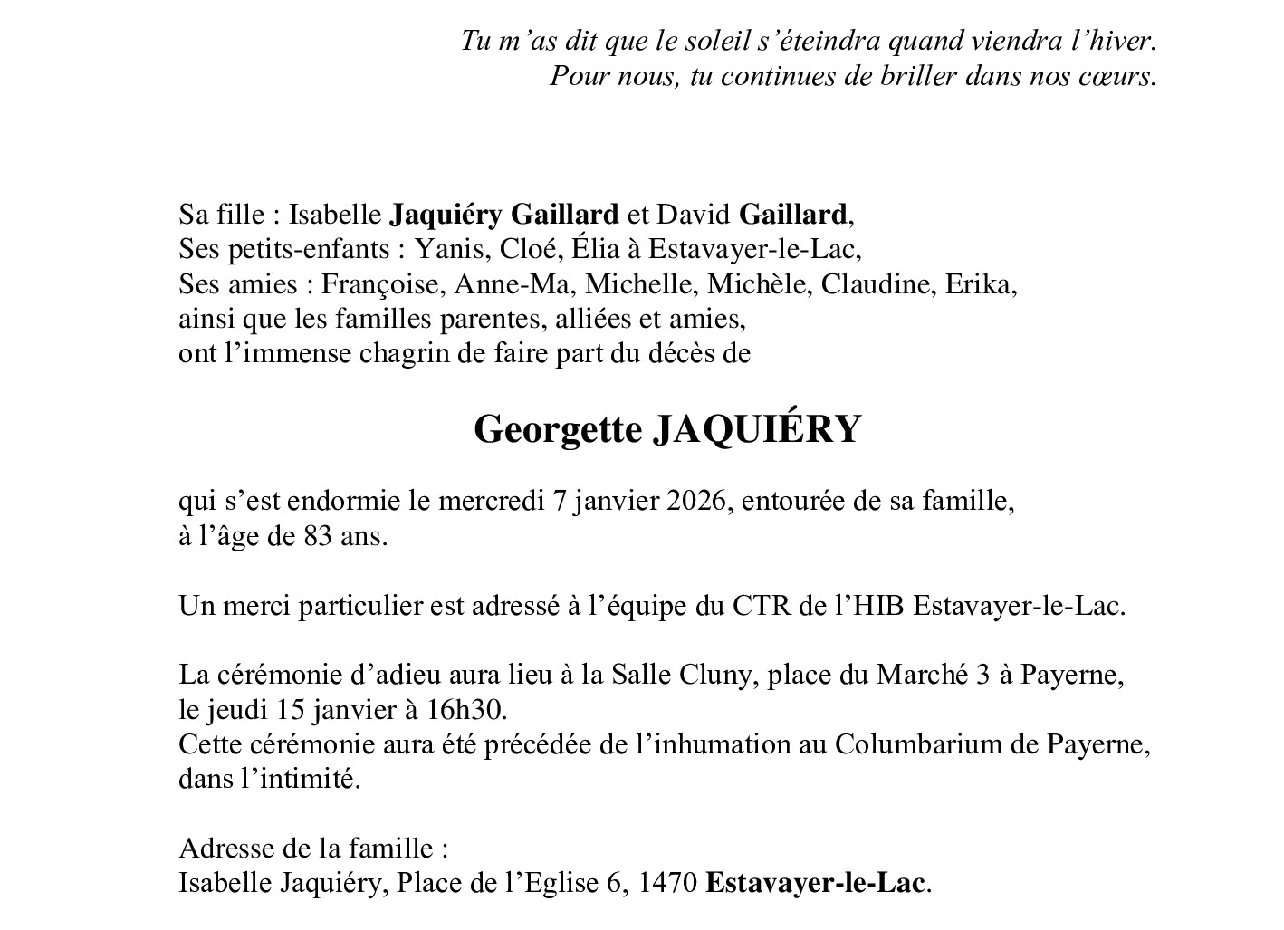 Madame Georgette JAQUIÉRY