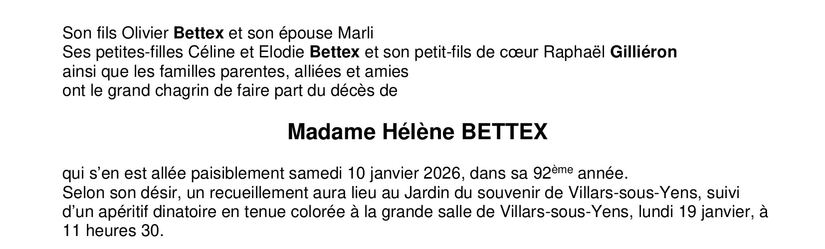 Madame Hélène BETTEX