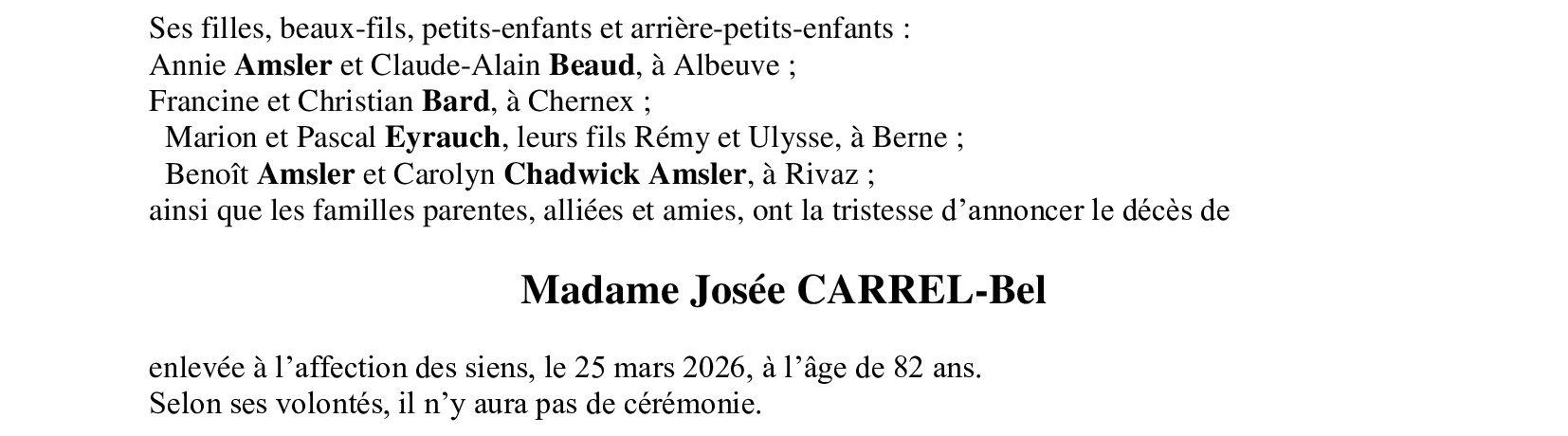 Madame Josée CARREL-Bel