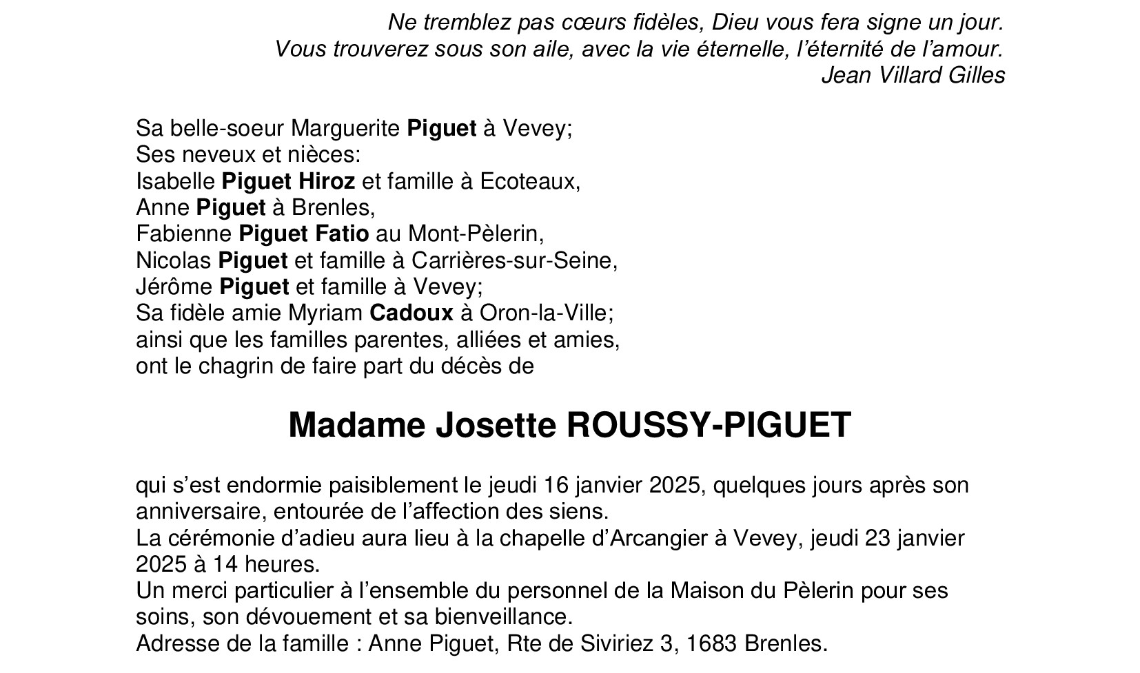 Avis mortuaire PFG
