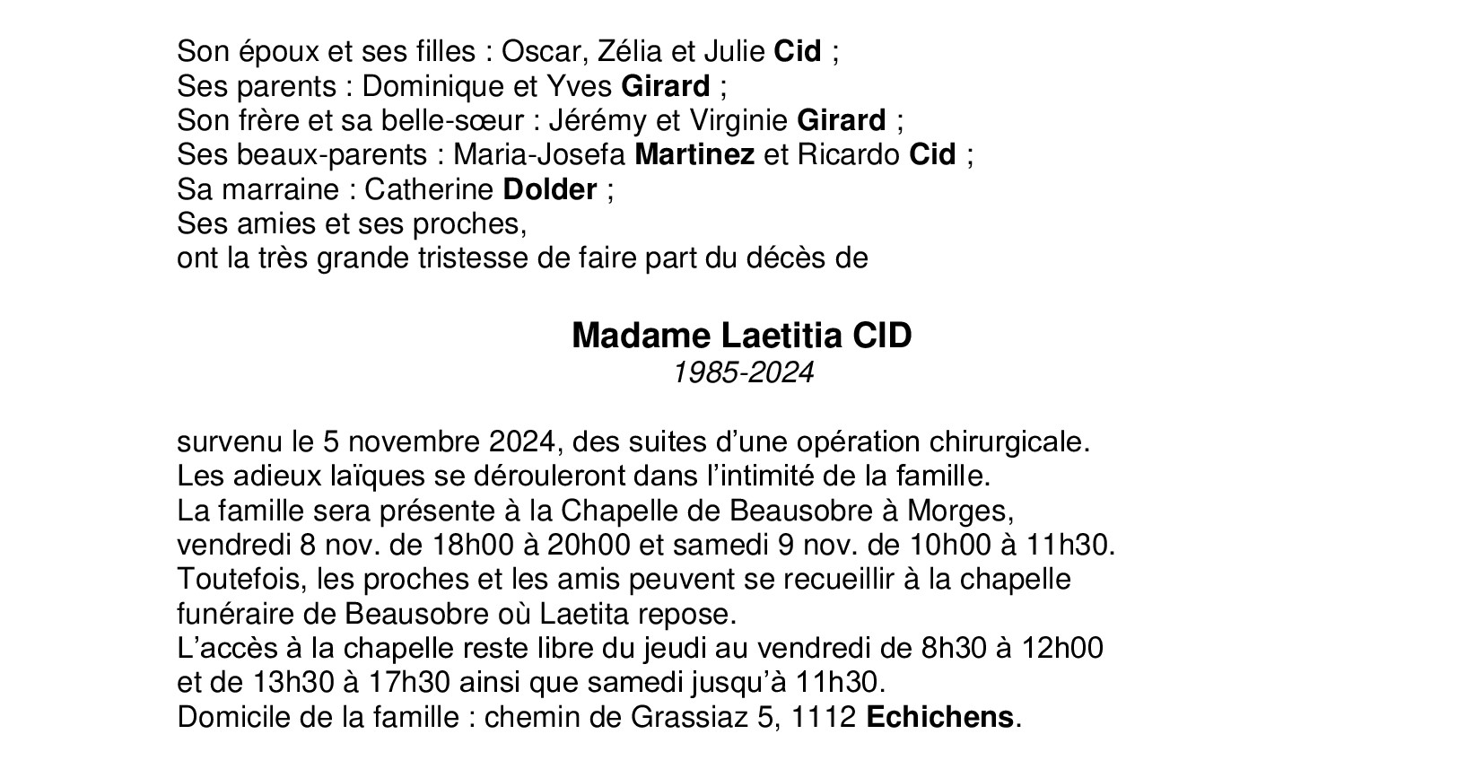 Madame Laetitia CID