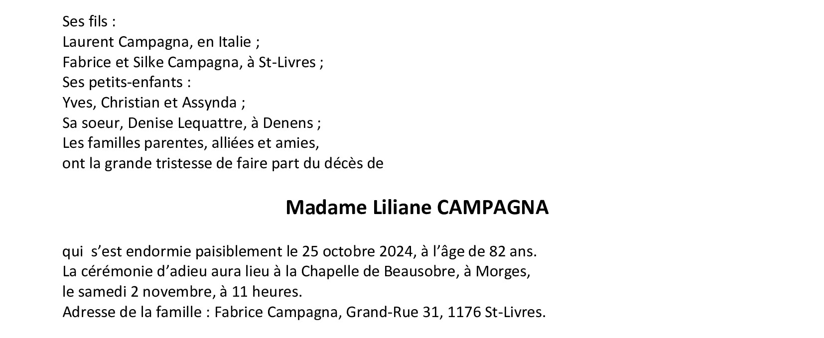 Madame Liliane CAMPAGNA