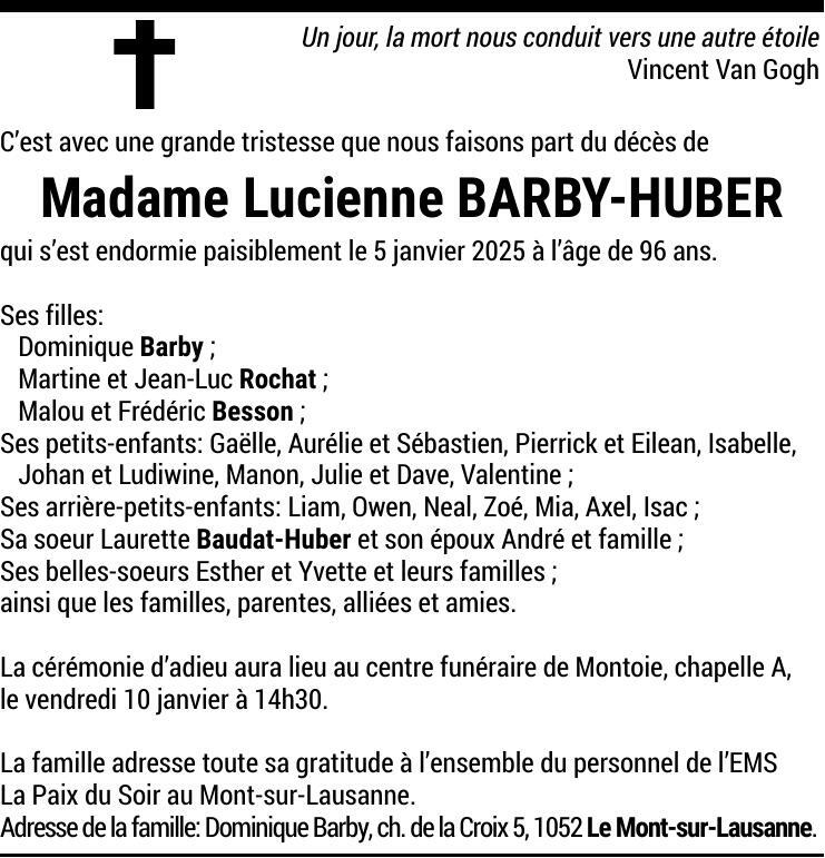 Madame Lucienne BARBY-HUBER
