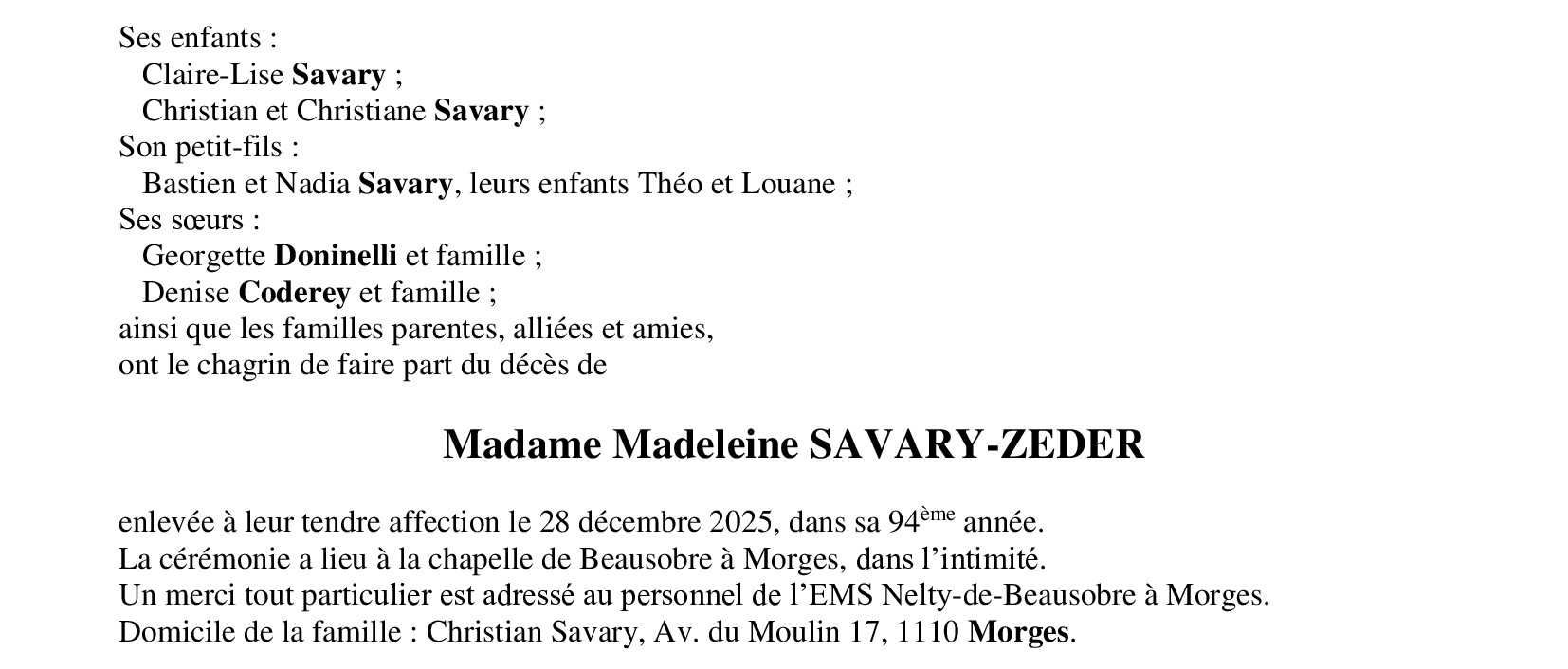 Madame Madeleine SAVARY