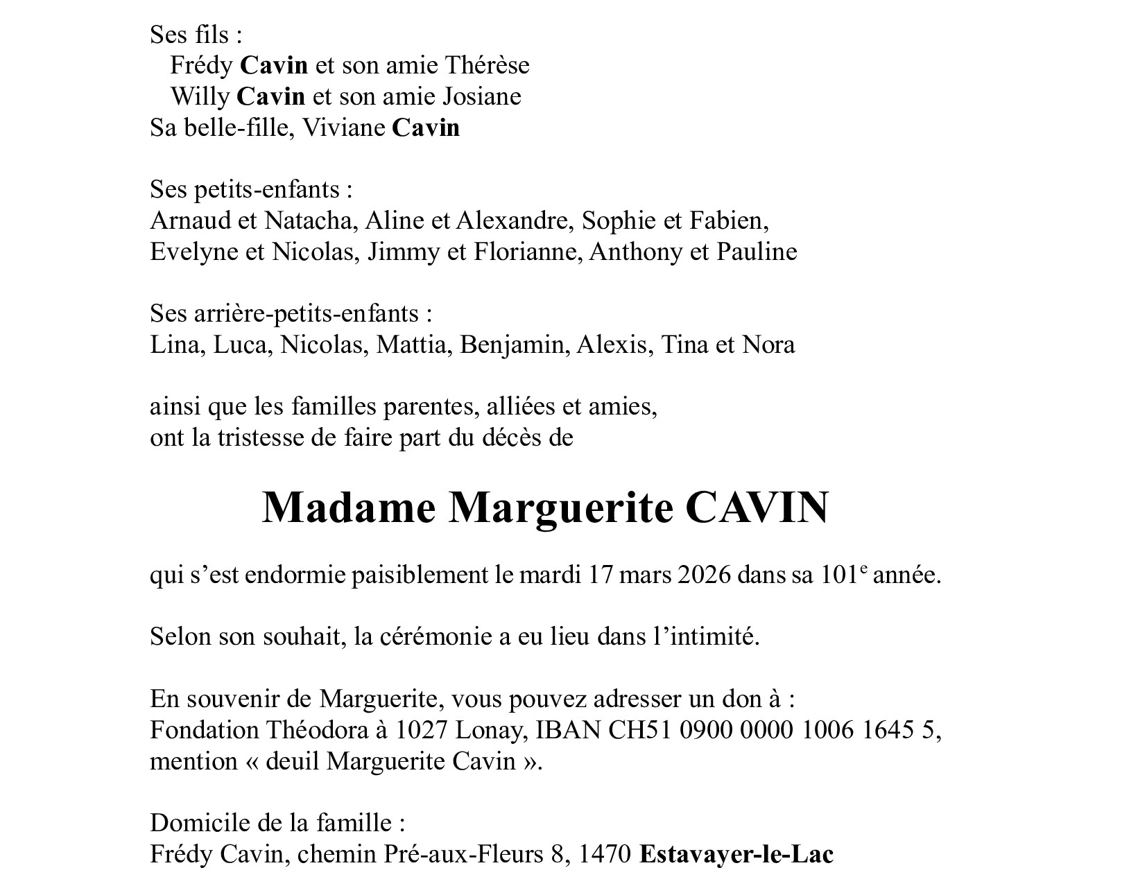 Madame Marguerite CAVIN