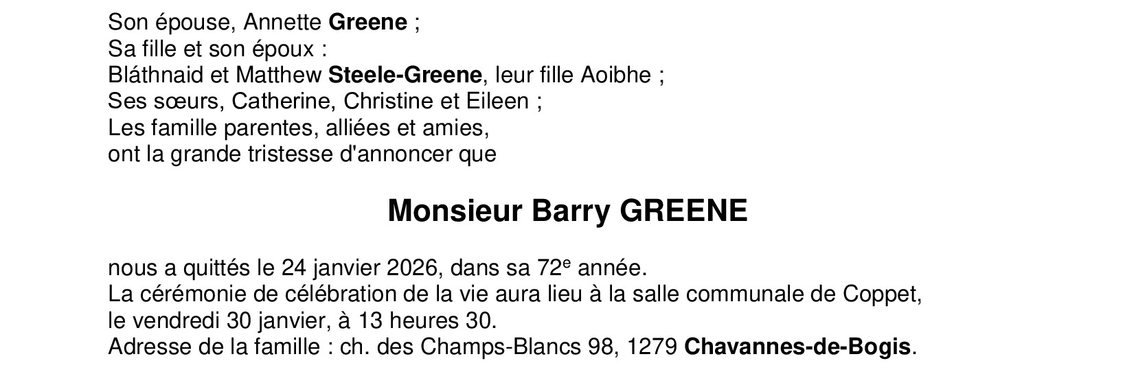 Monsieur Barry GREENE