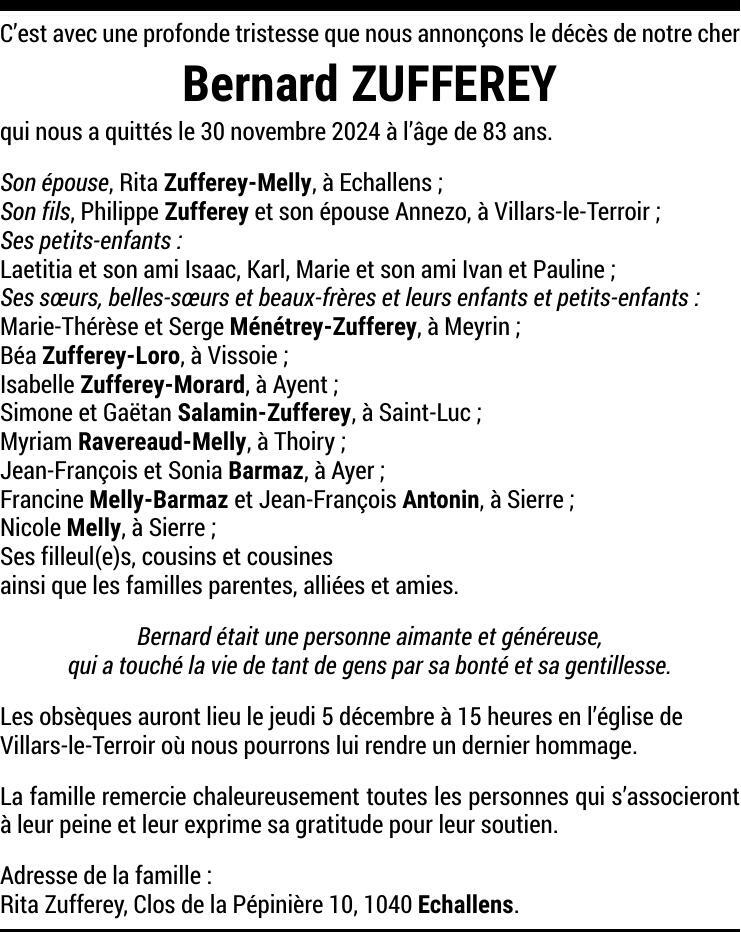 Monsieur Bernard ZUFFEREY
